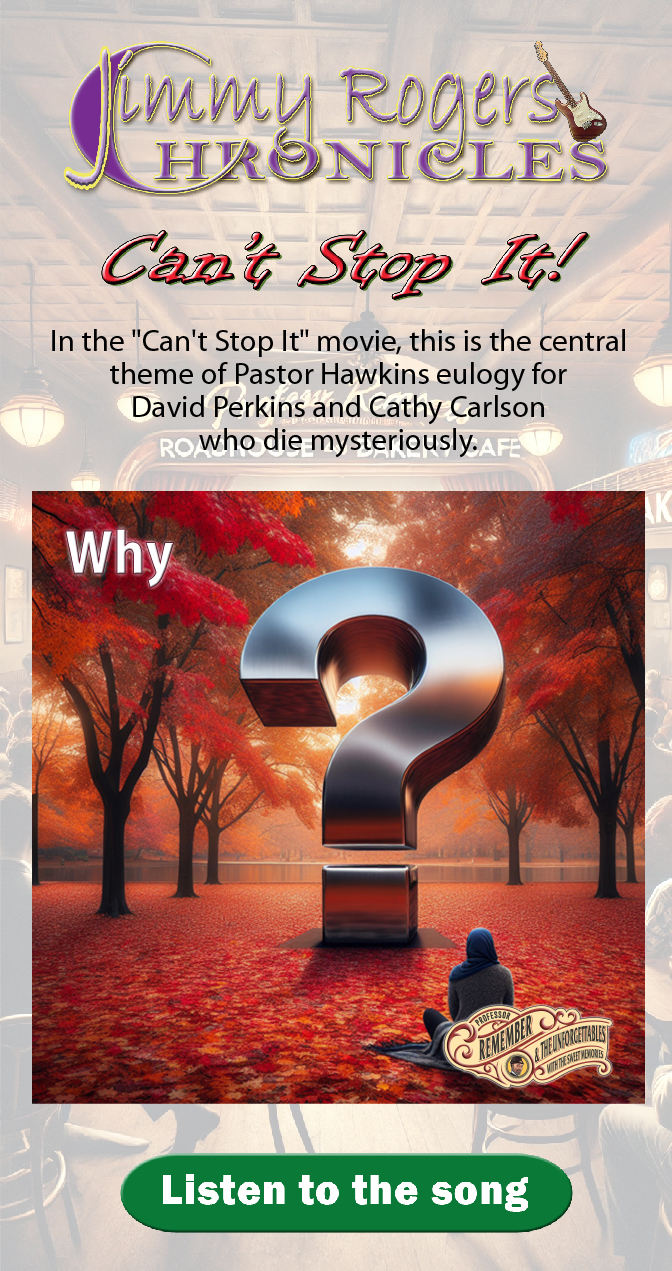 “Can’t Stop It” is a coming of age/murder mystery where teenager Jimmy Rogers is in a battle to break from his Father’s belief “Life is a cruel joke, barely worth living”.